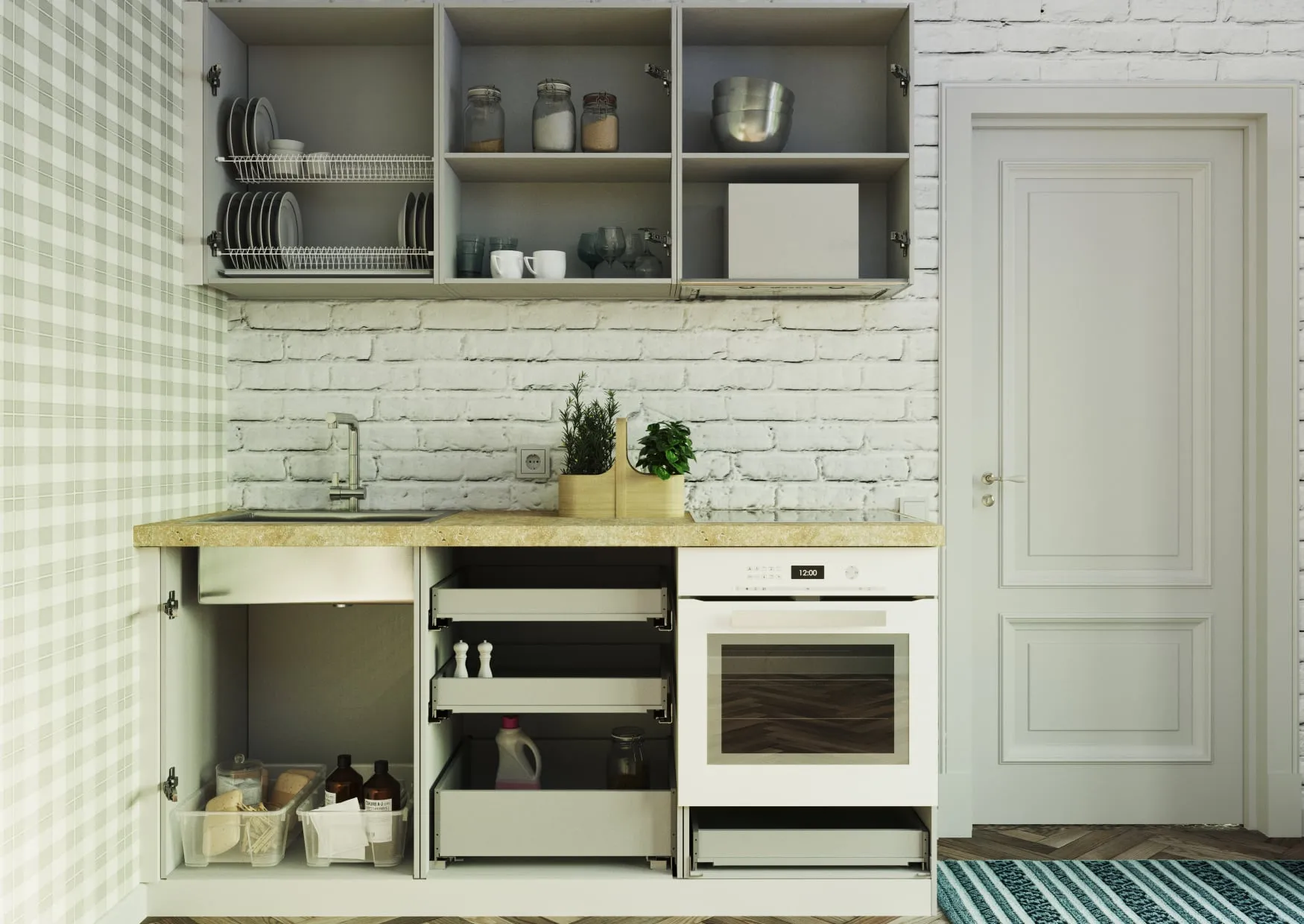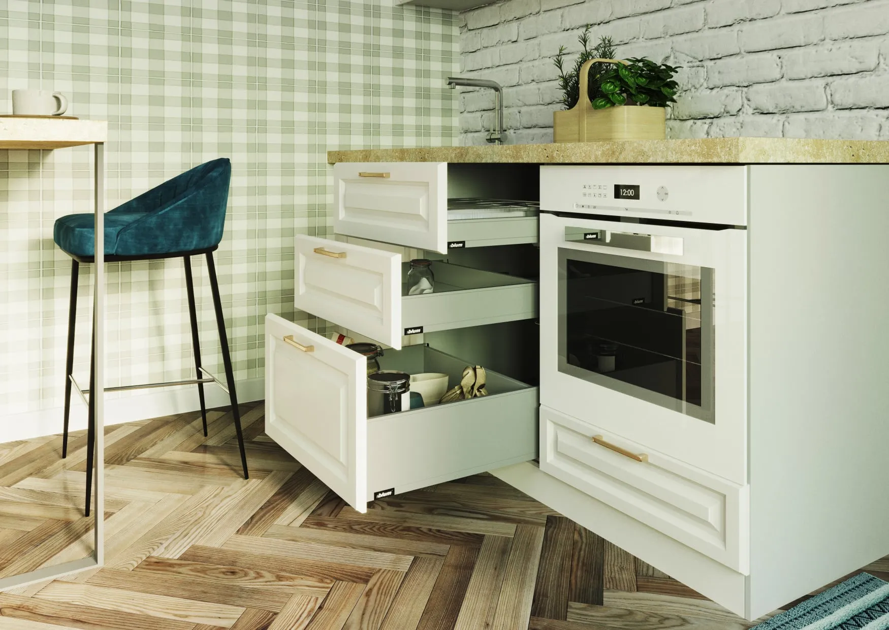Механизмы открывания: петли Intermat (Hettich), направляющие Quadro 25 (Hettich)