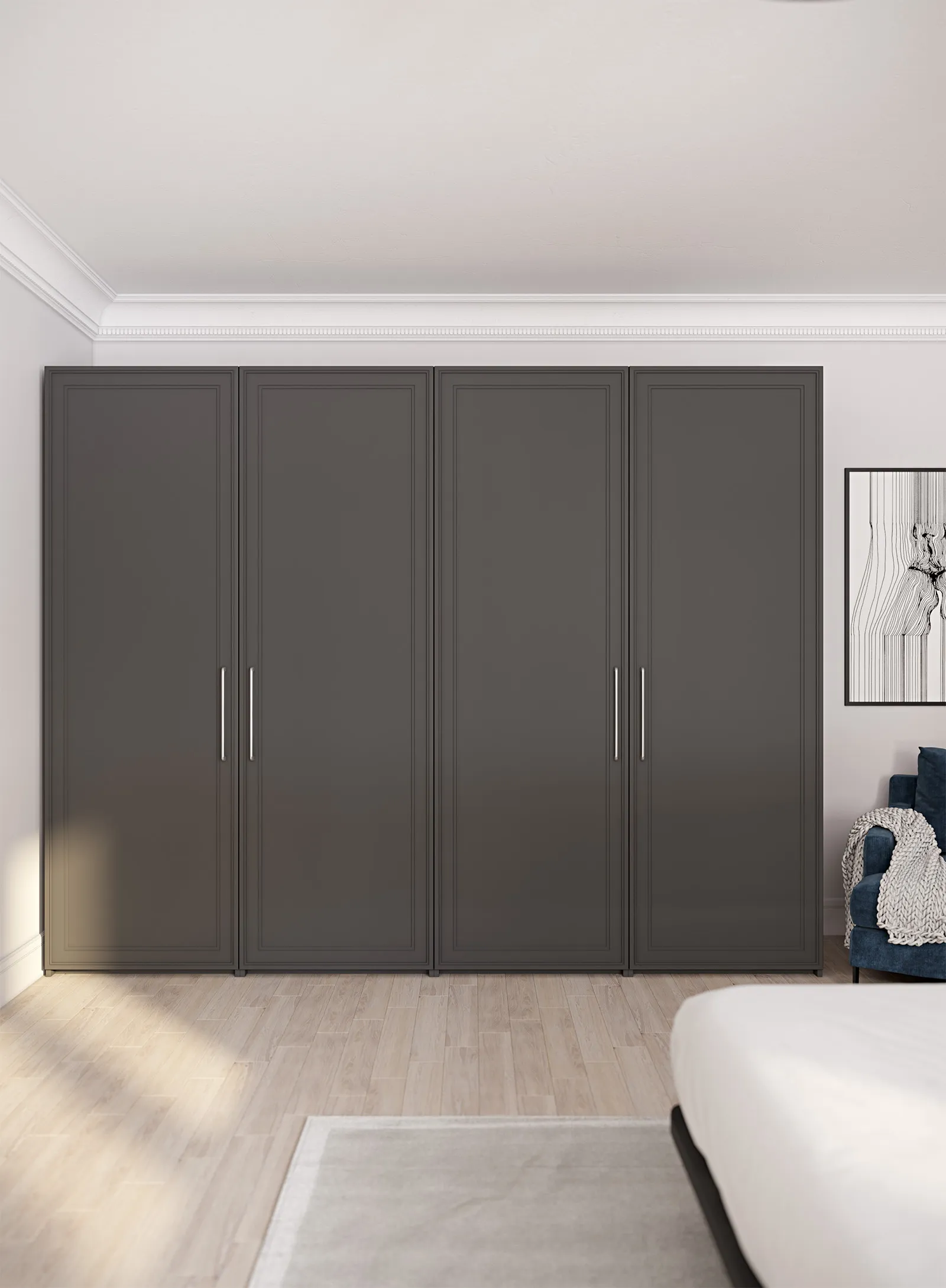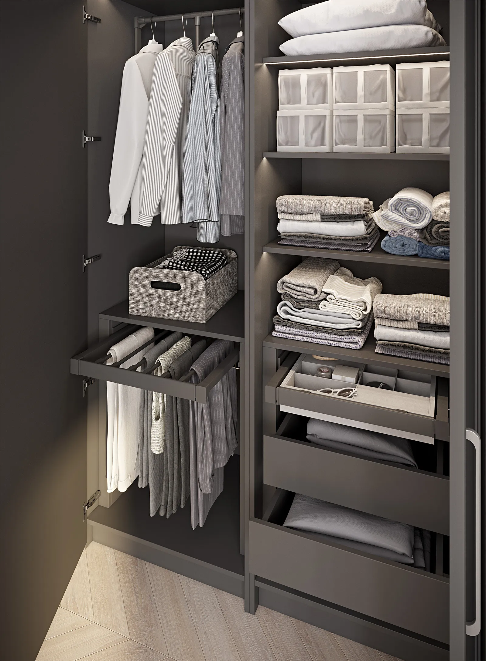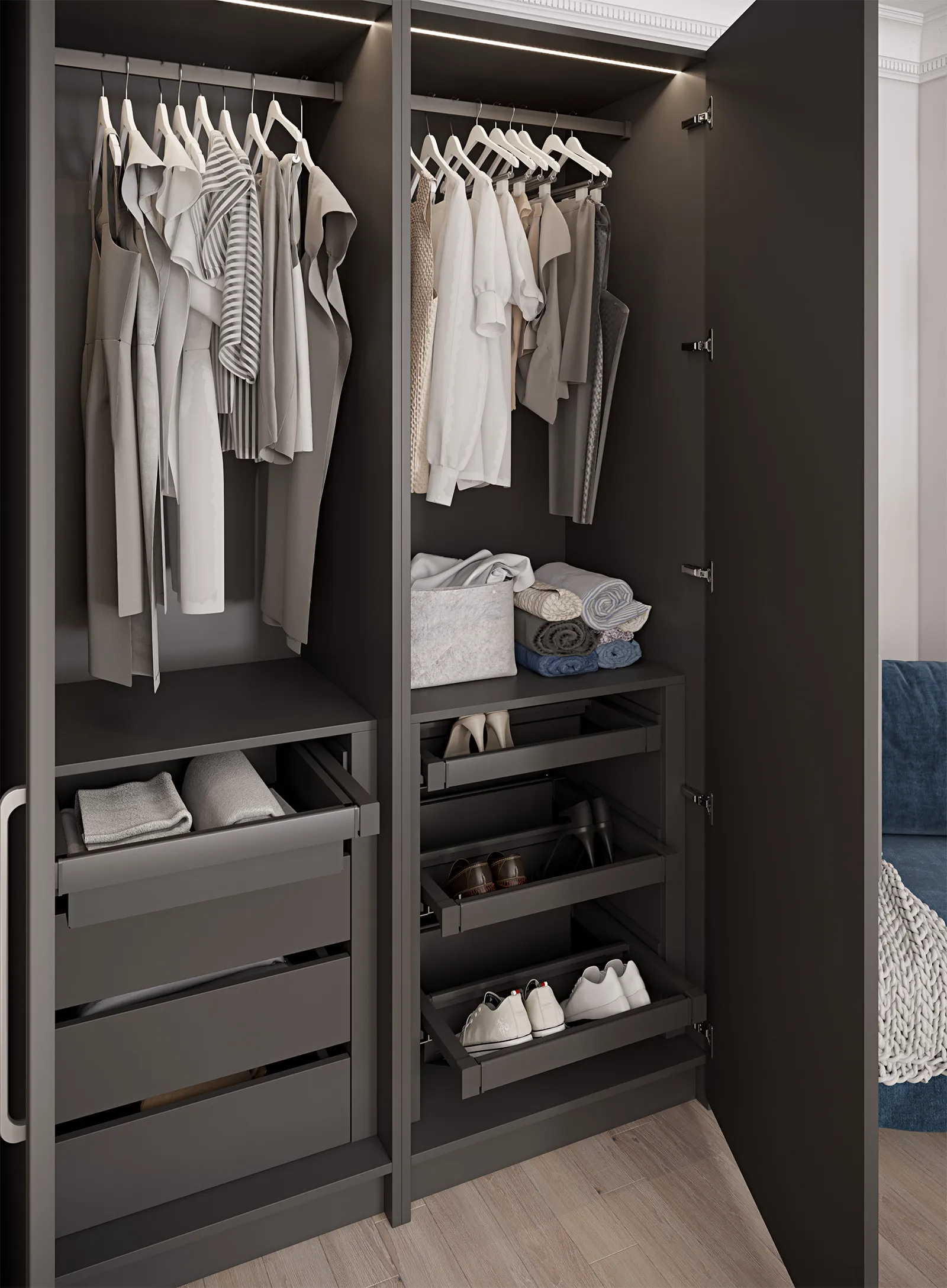 КАРКАС, ЗАДНЯЯ СТЕНКА, ПОЛКИ, ВЫДВИЖНЫЕ ЯЩИКИ ЛДСП Графит ФАСАДЫ Локарно (МДФ / ПВХ), цвет NCS S 8000-N матовый