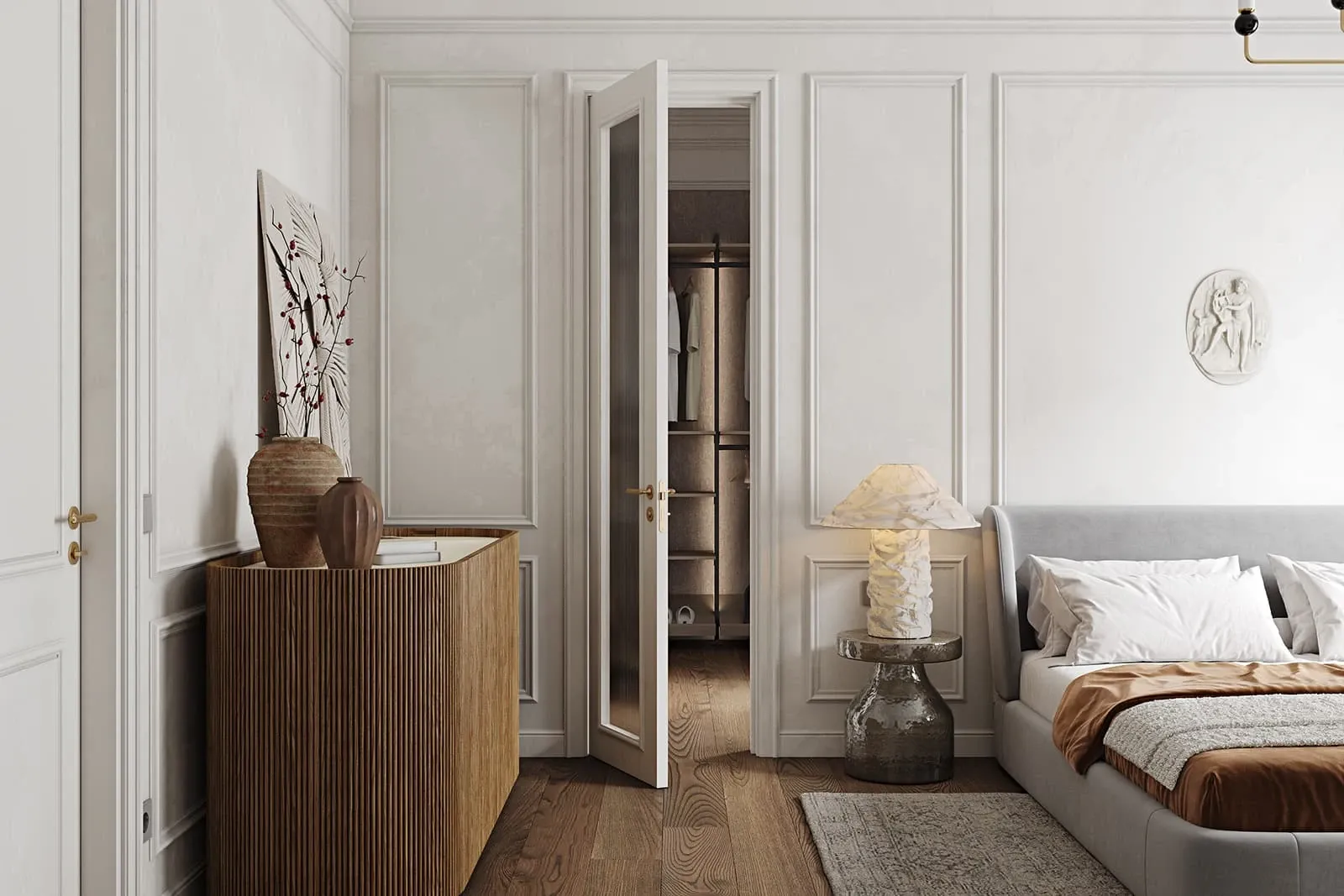ОПОРНЫЙ ПРОФИЛЬ PA 02, цвет Черный Матовый НАВЕСНЫЕ ЭЛЕМЕНТЫ ЛДСП (толщина 18 мм), цвет Ярко-серый / стекло прозрачное (толщина 6 мм)
