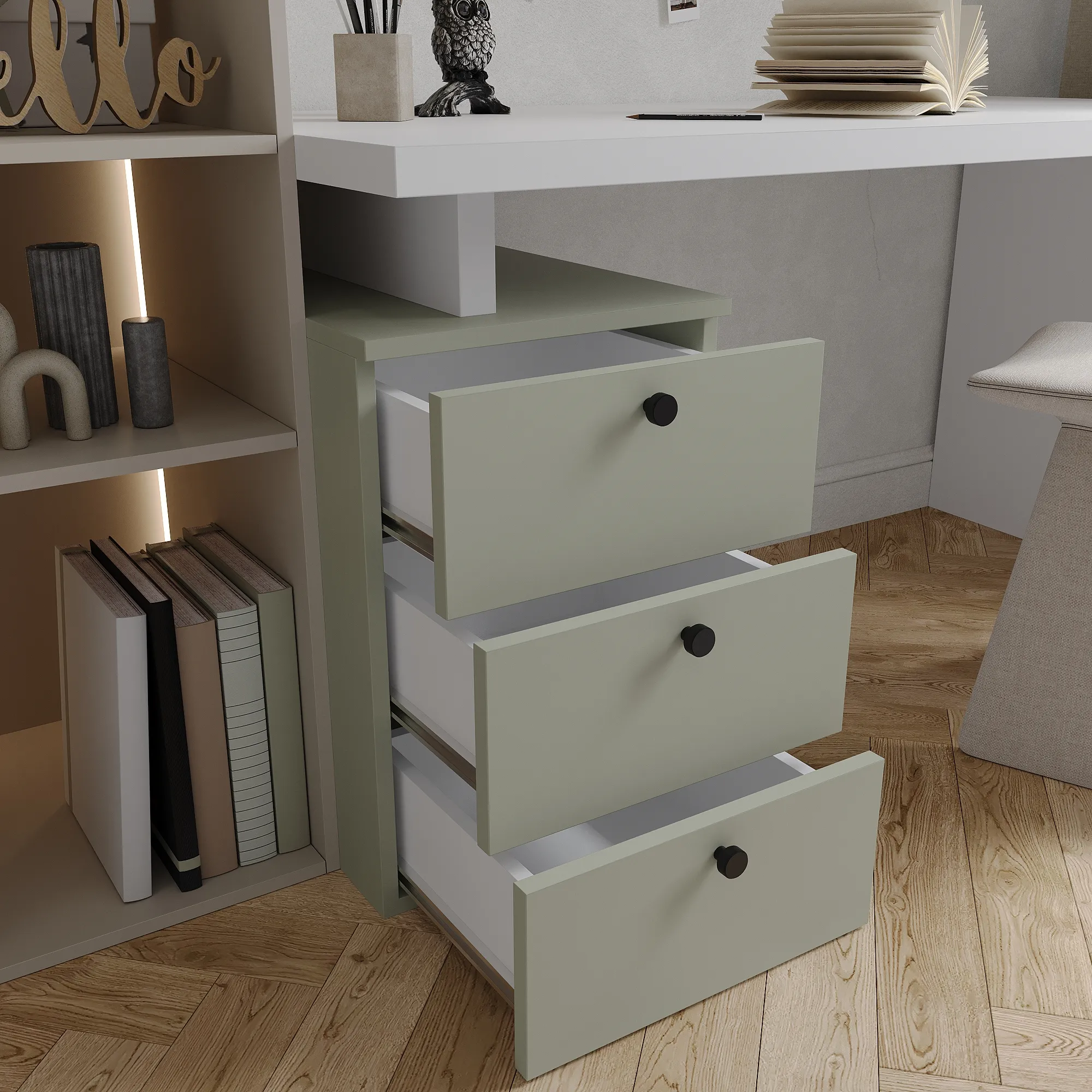 Письменный стол — функциональное решение для домашнего или офисного пространства. Модель Марио выполнена в современном стиле, что позволяет ей стать гармоничной частью любого интерьера. Стол спроектирован так, чтобы обеспечить удобство работы за компьютером или ноутбуком. Функциональные ящики предоставляют дополнительное место для хранения различных принадлежностей, необходимых в повседневной деятельности. Это делает письменный стол с ящиками идеальным выбором для школьников и студентов, которым нужно организовать своё учебное пространство. Отсутствие лишних деталей на рабочем месте позволяет сосредоточиться на важных делах. Стол для школьника отличается практичностью и комфортом. Простая конструкция обеспечивает надёжную поддержку для рабочих материалов и устройств. Достаточно места для установки монитора или ноутбука делает его подходящим выбором для использования в учебных целях.
