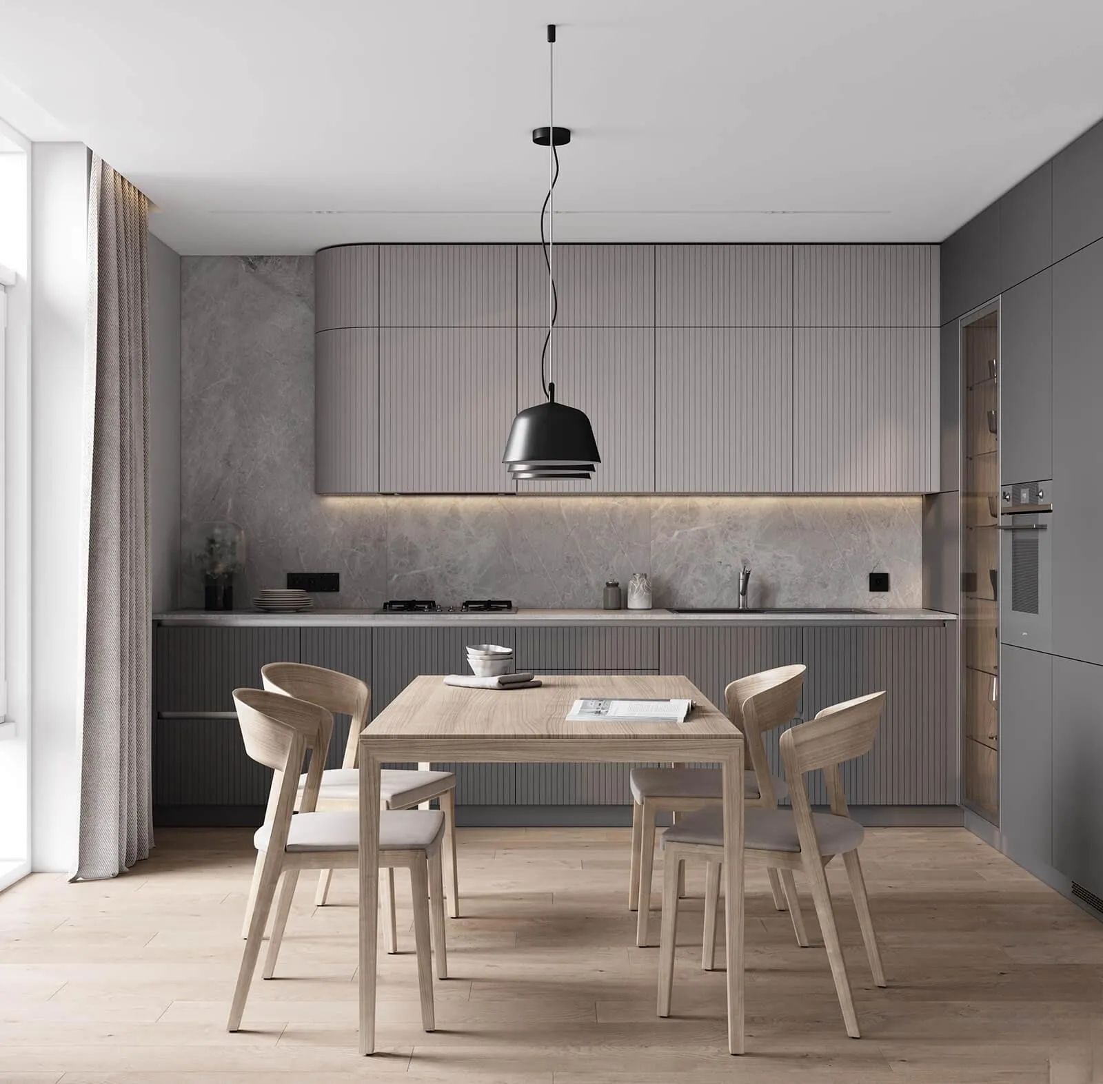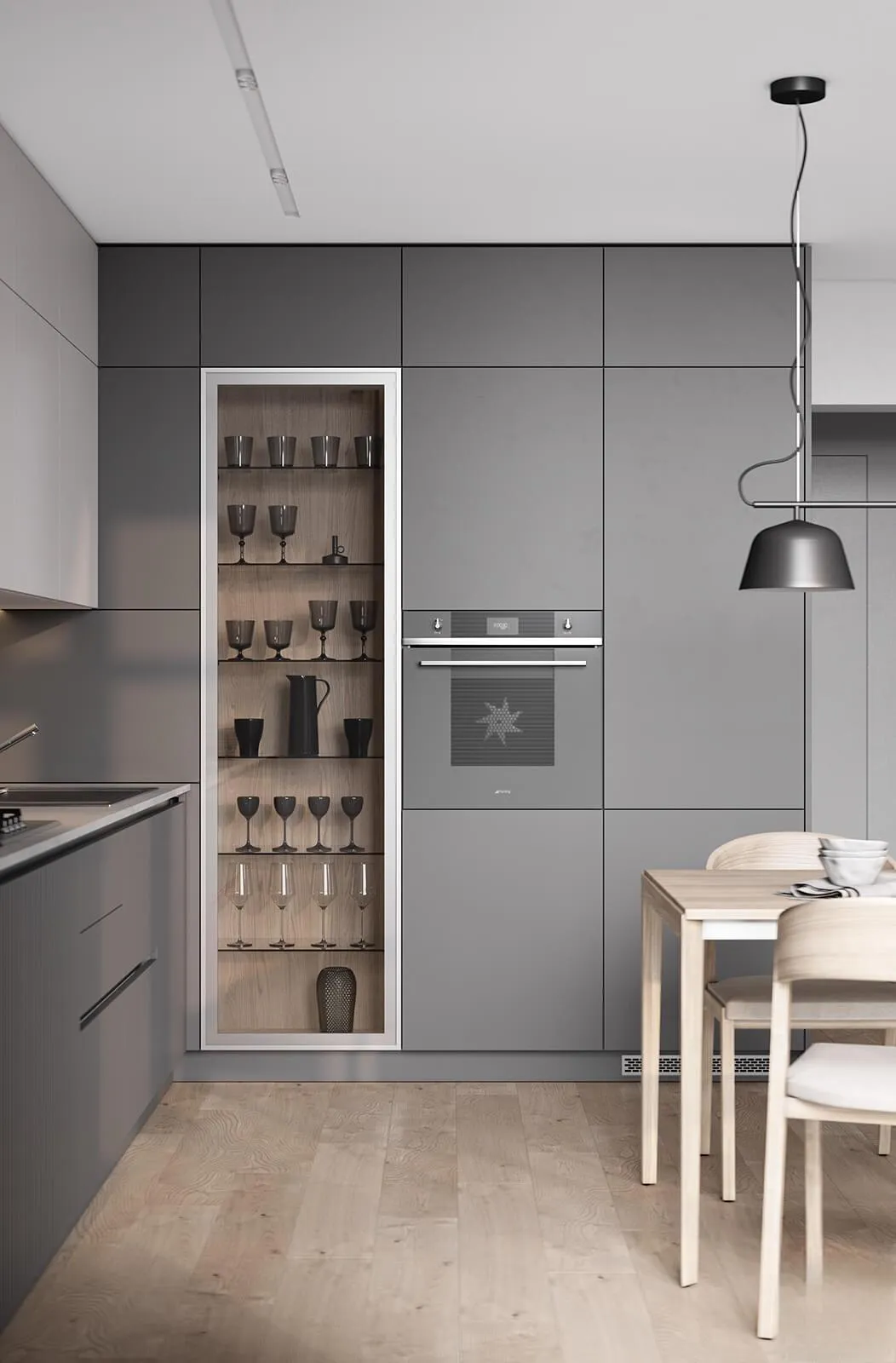 Для тех, кто любит сдержанность и гармонию, идеальным выбором станет кухня с островом из коллекции АВРОРА с фасадами в серой гамме. Этот нейтральный оттенок подходит для любого стиля интерьера, благодаря своей универсальности и способности сочетаться с различными цветами.