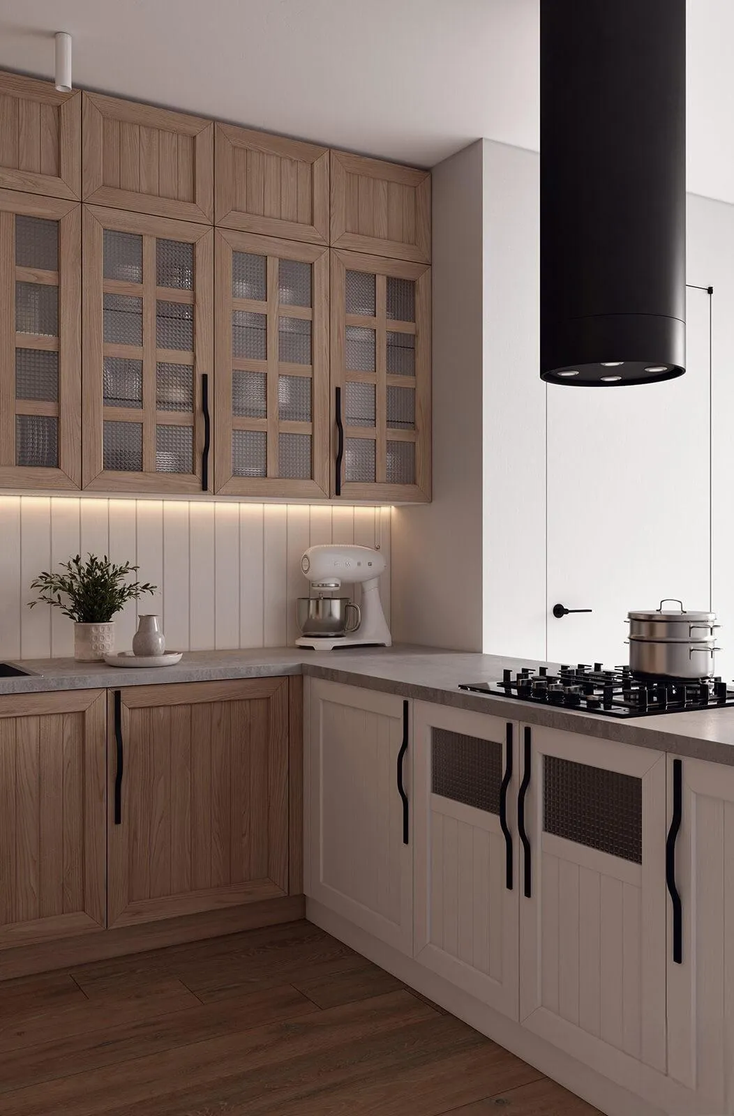 Фасады: Т536 Натуральный ясень, цвет NCS S 0500-N / #189 (воскобейц Белый)