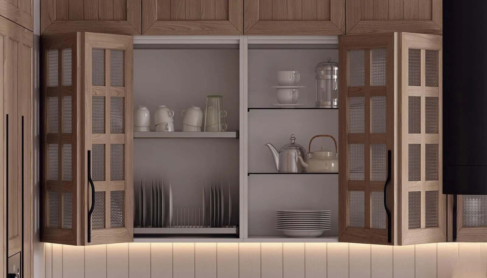Декоративные фасады: Фасад Комби-В2 (стекло Тисненое-1 / шпонированная МДФ)
