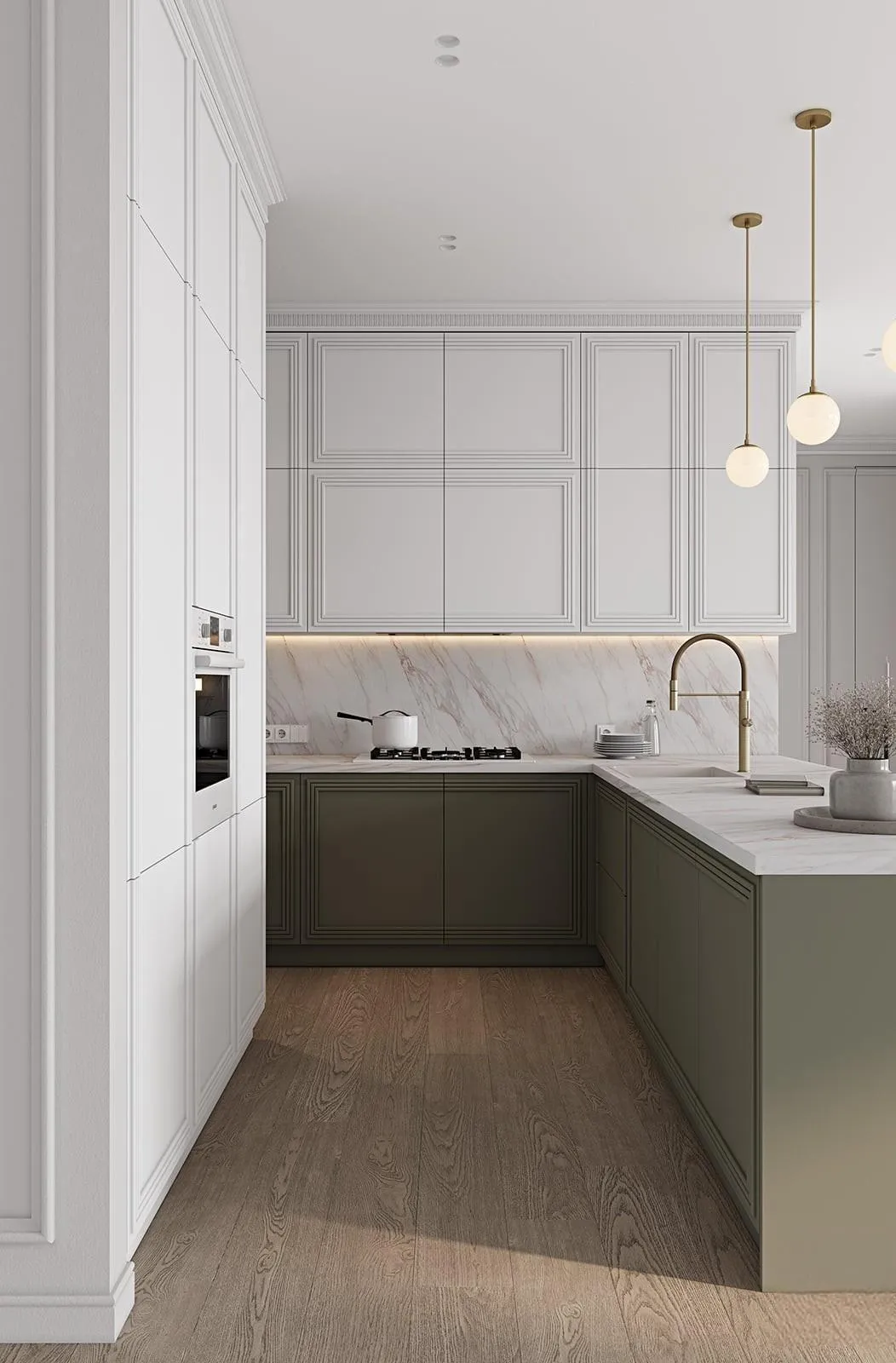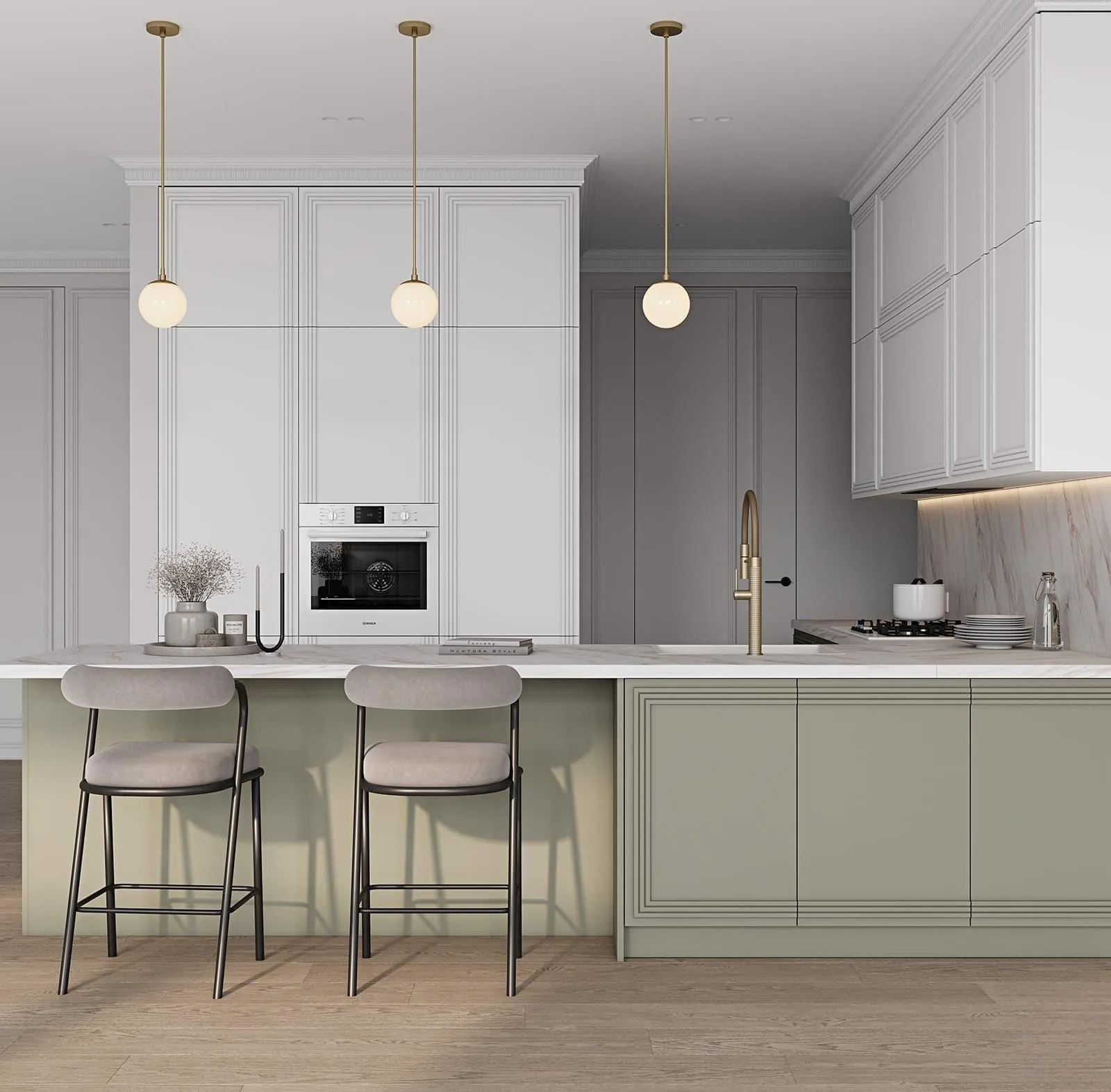 Фасады: Т650 Крашеная МДФ / массив ольхи, цвет 156 / NCS S 4010-G10Y