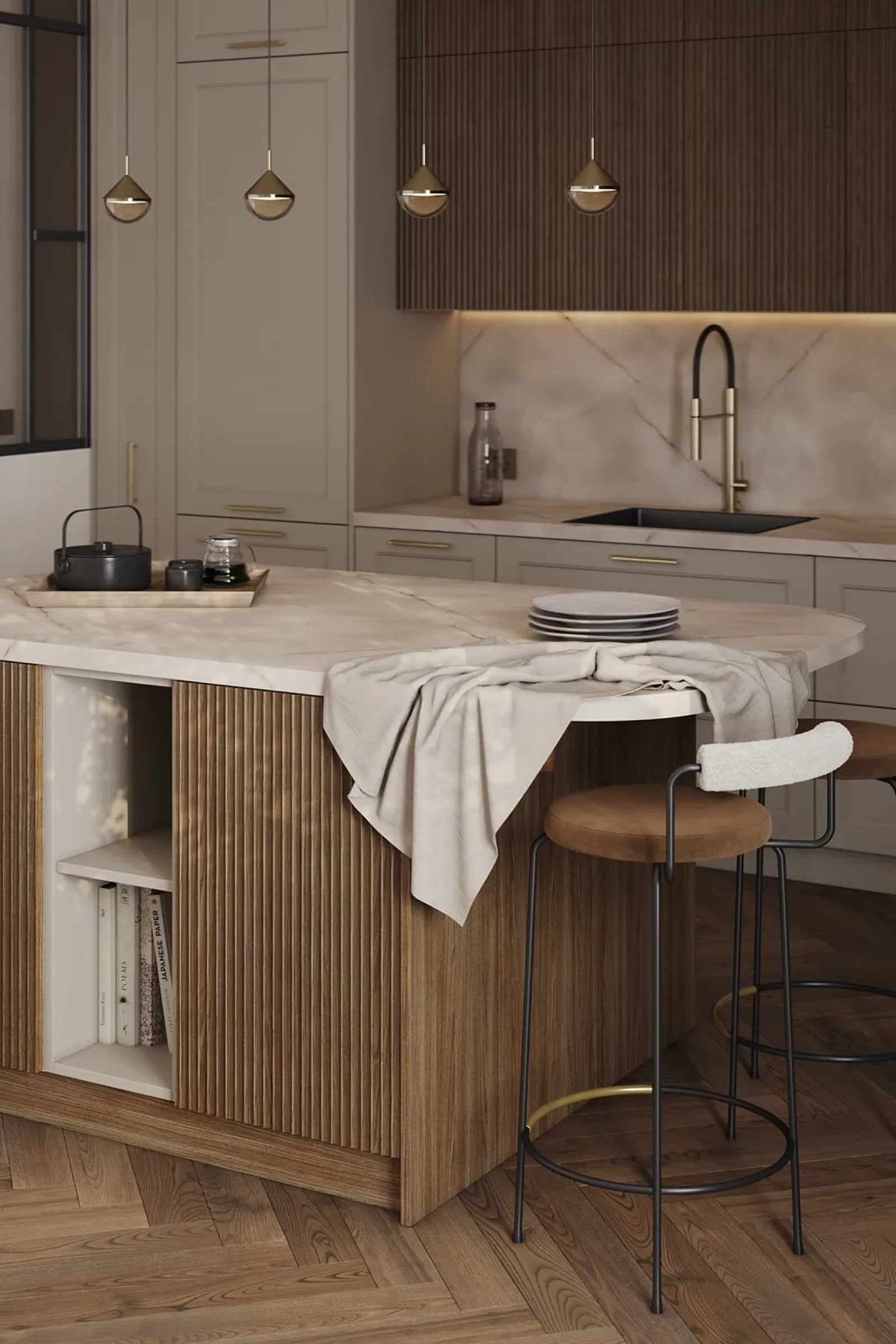 Фасады: Норвуд (МДФ/PET), цвет Ангора PET / Т433 Шпон дуба, цвет #111