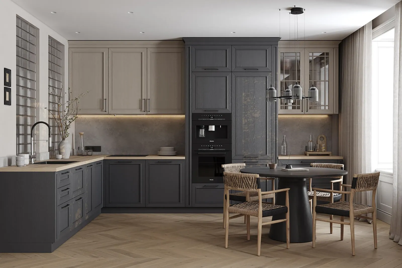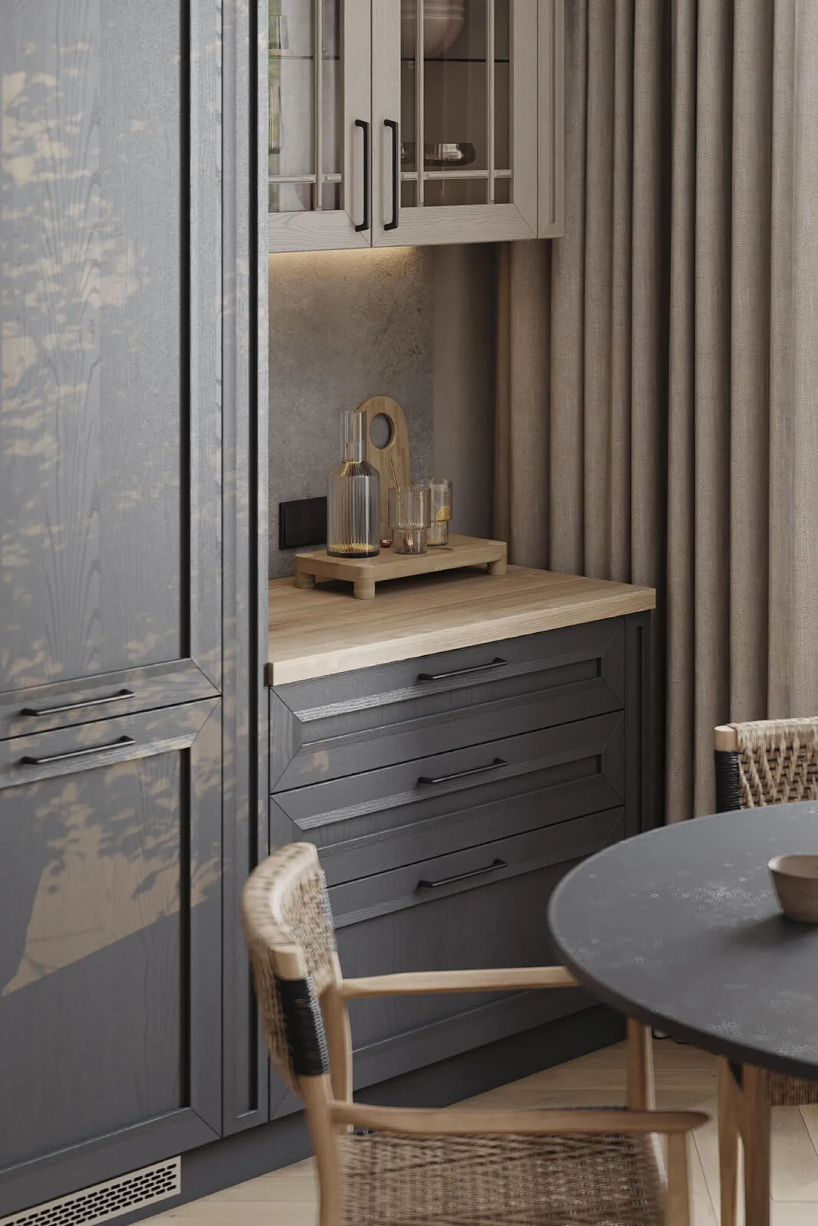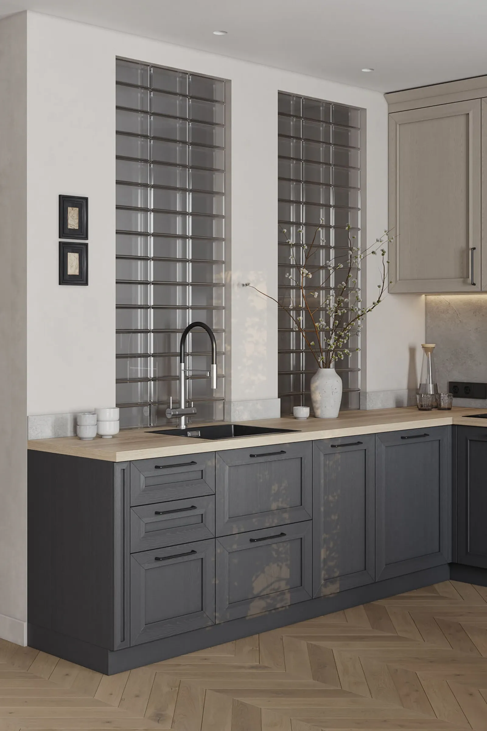 Фасады: Т763 Натуральный дуб, цвет NCS S 7005-B20G / NCS S 2502-Y
