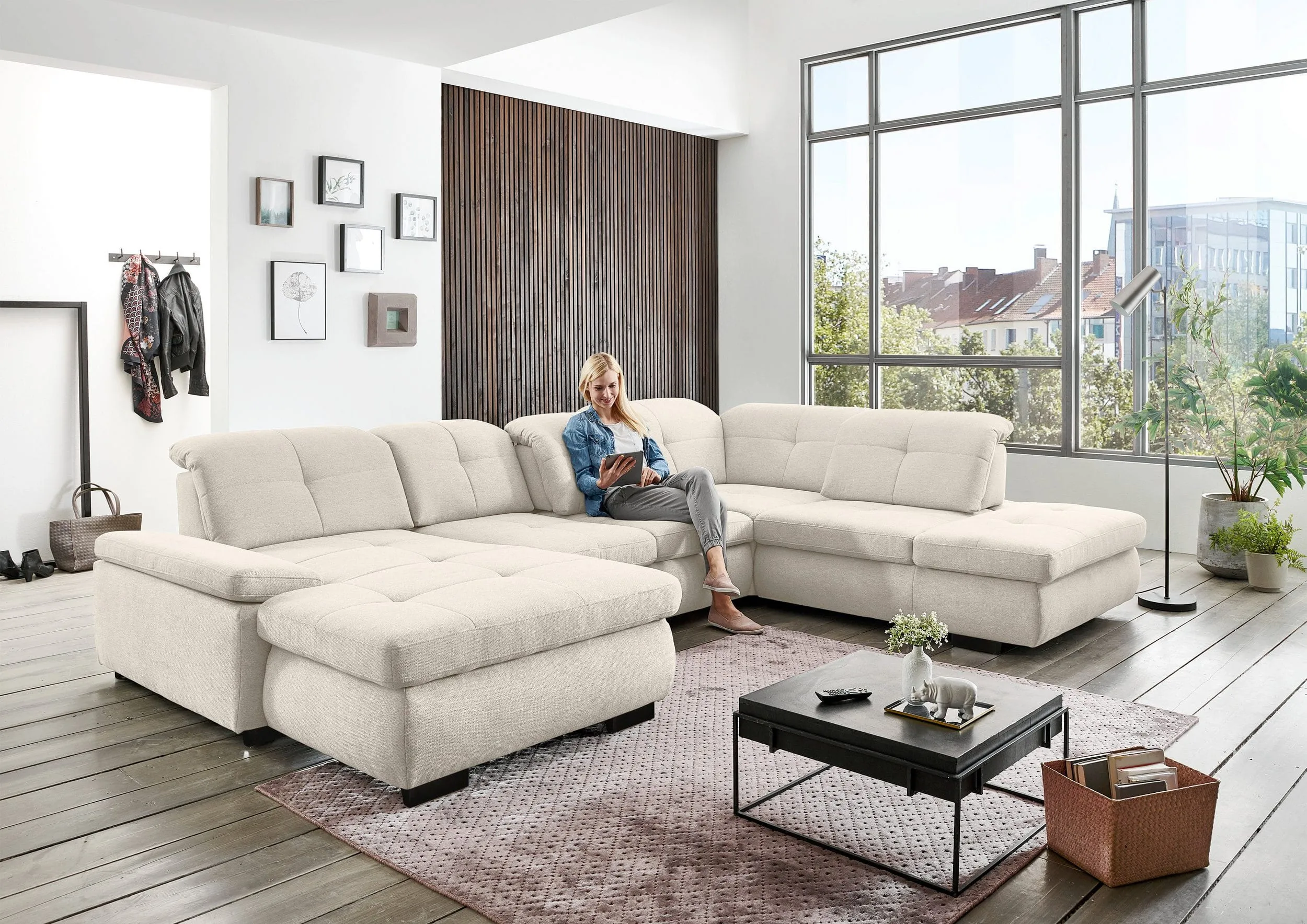 ✔ Полуторный элемент с ящиком + регулировка глубины сидения (ST) - дополнительный выдвижной ящик для хранения и пуф справа.