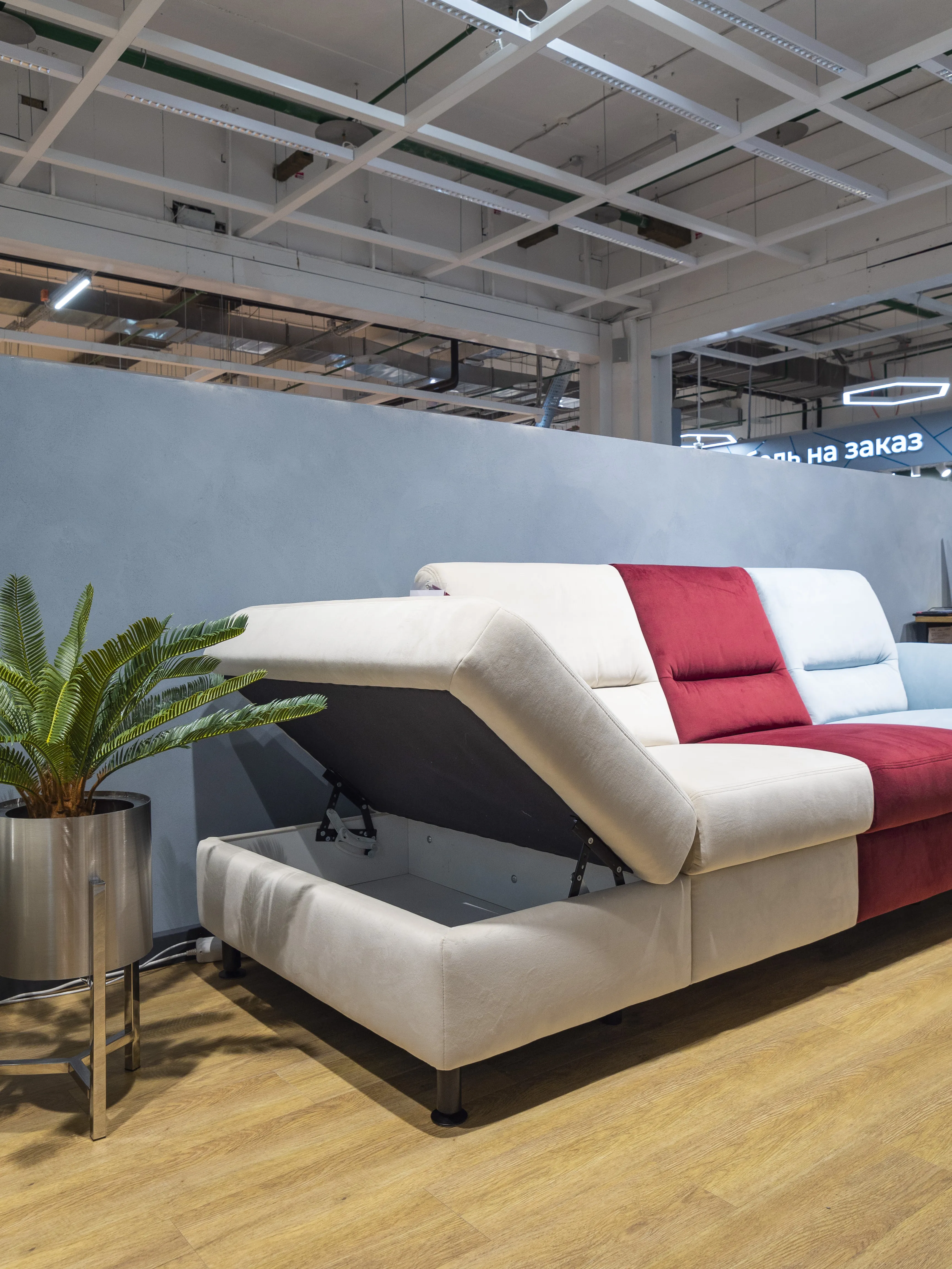 ✔ Одноместный элемент с ящиком для хранения (S) и пуфом слева (F).