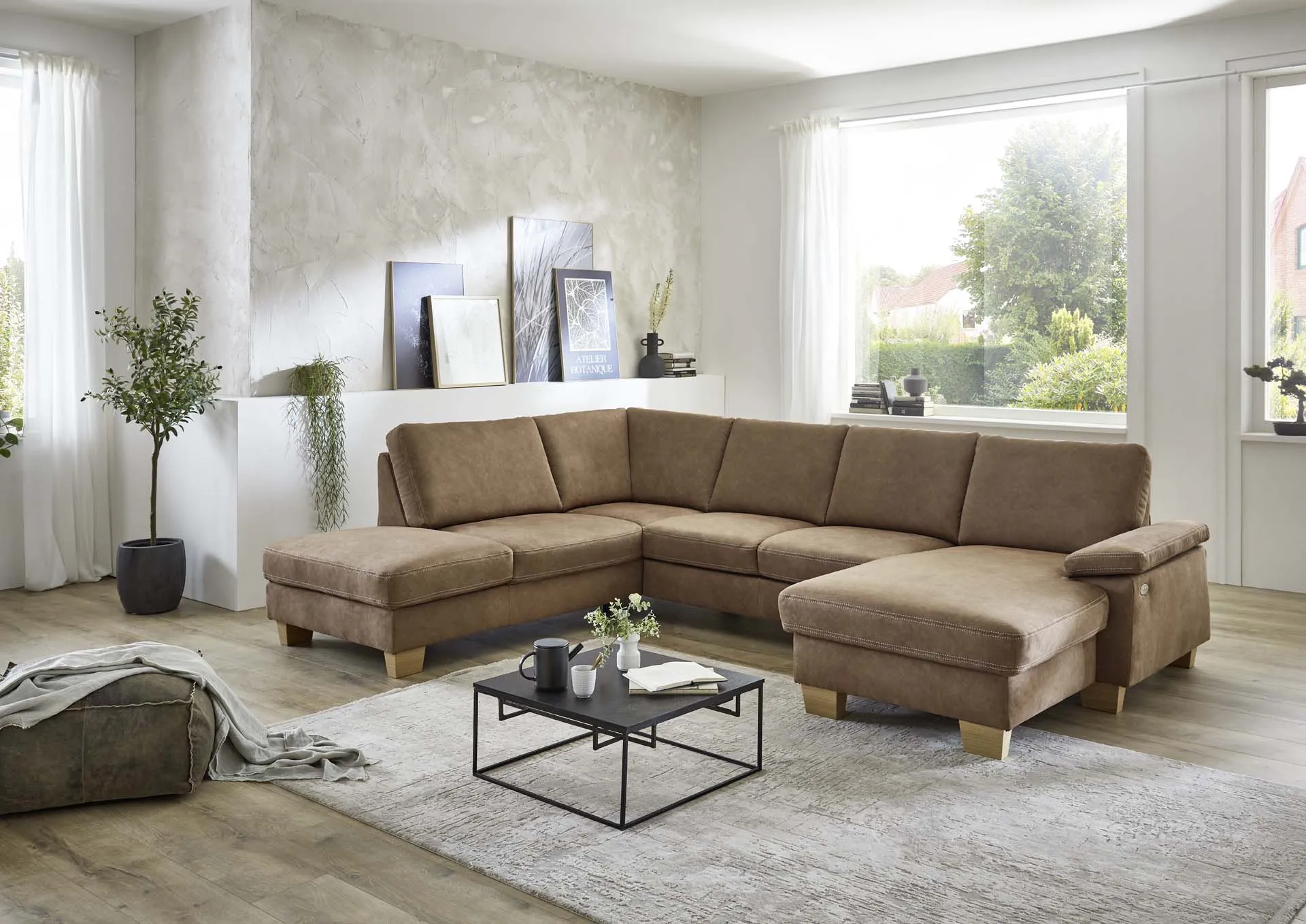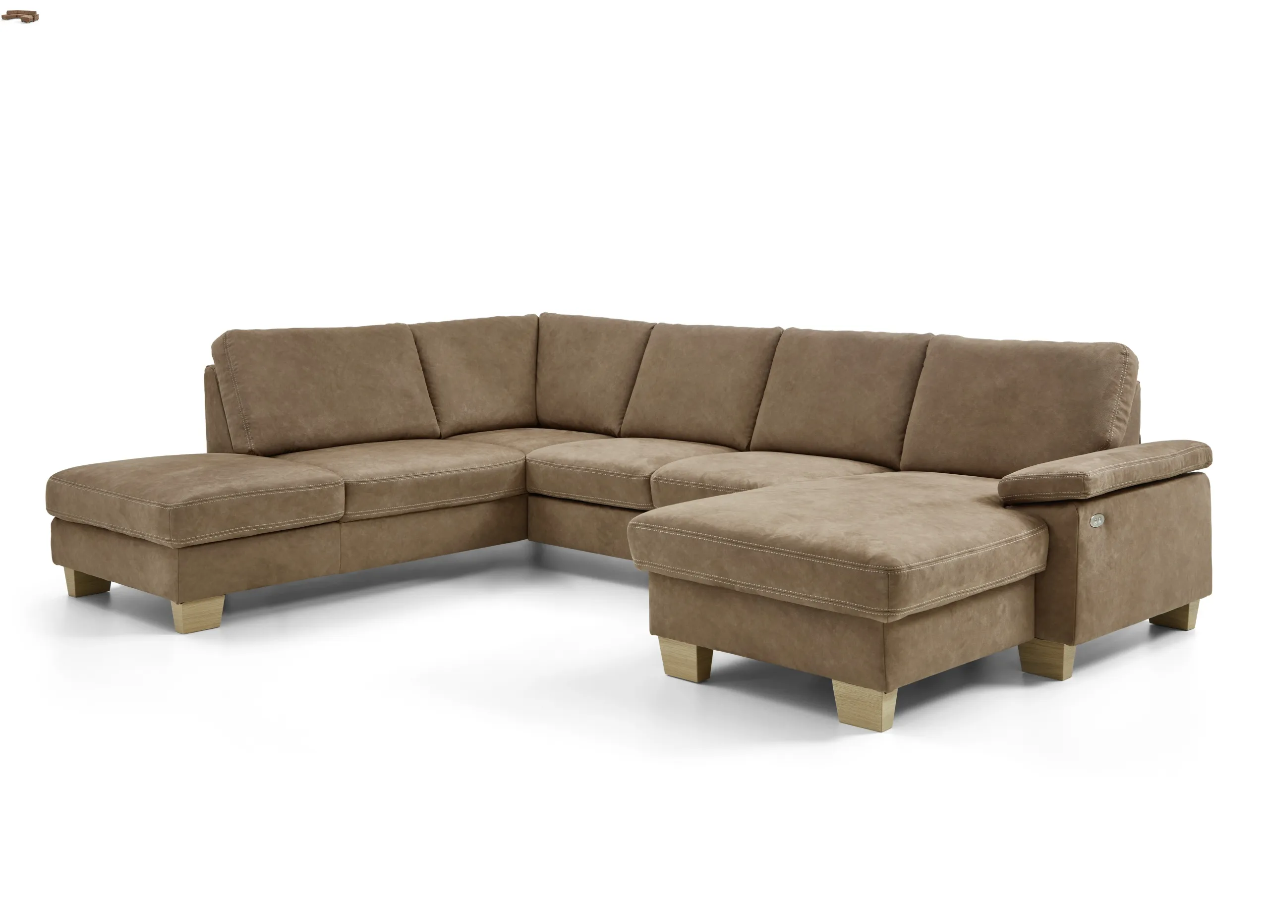 Полуторный комби элемент c доступом к ящику для хранения + Увеличенный двухместный элемент, трансформируемый в спальное место + Канапе с электрическим двигателем для регулировки положения спинки и сиденья + регулировка подлокотника