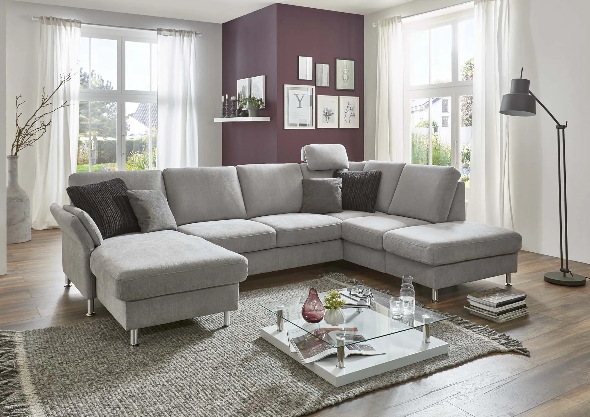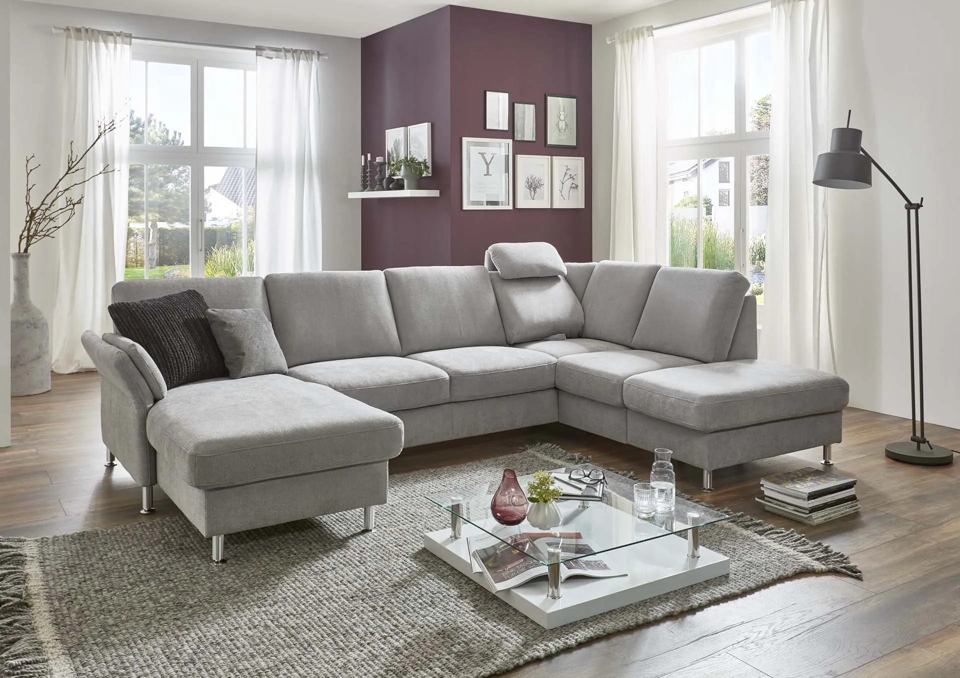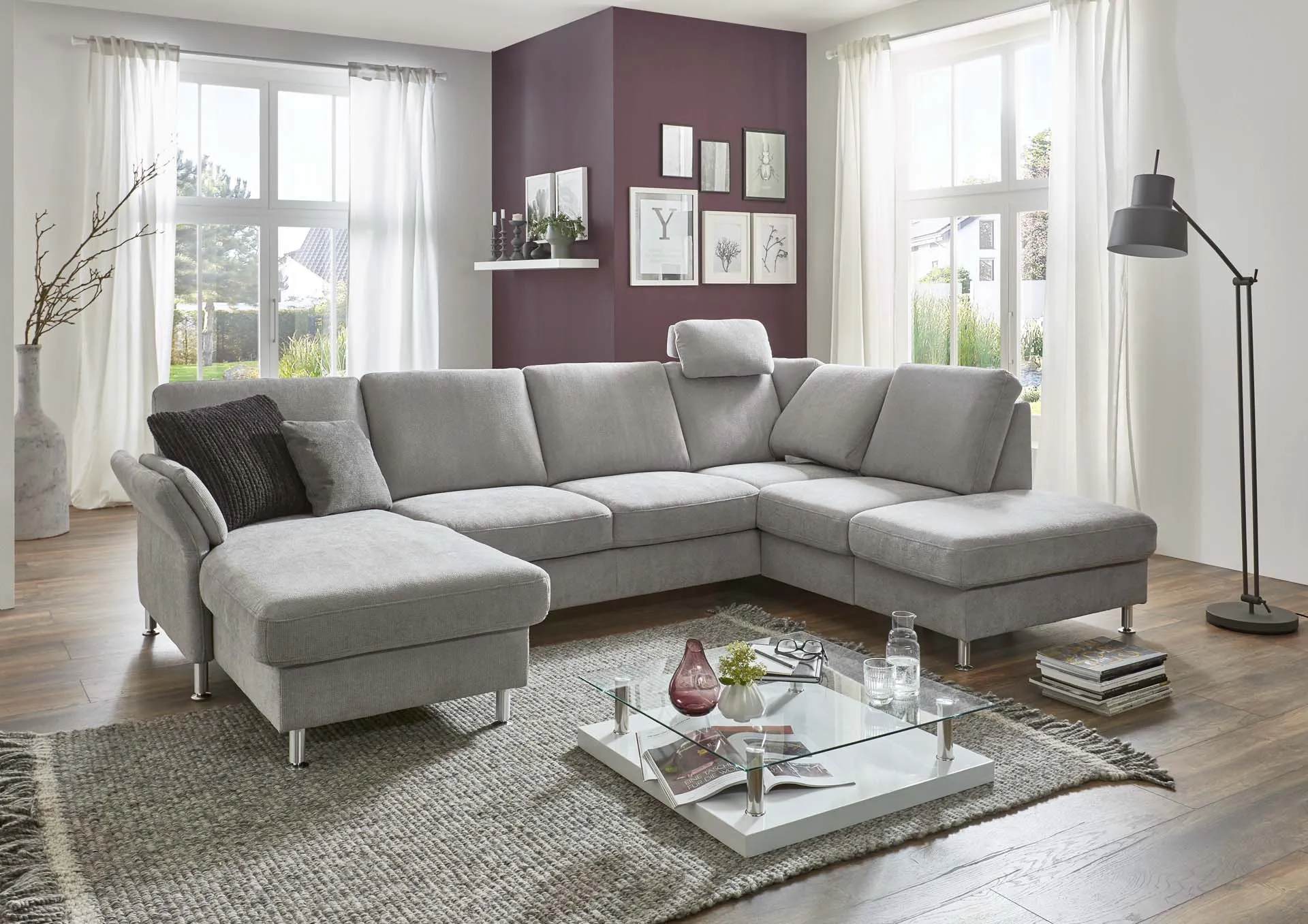 Ручной механизм регулировки подлокотника + канапе + увеличенный двухместный элемент, трансформируемый в спальное место + одинарный комбинированный элемент с выдвижным ящиком для хранения и с ручным механизмом подъема крайней части для доступа к ящику + подголовник премиум.