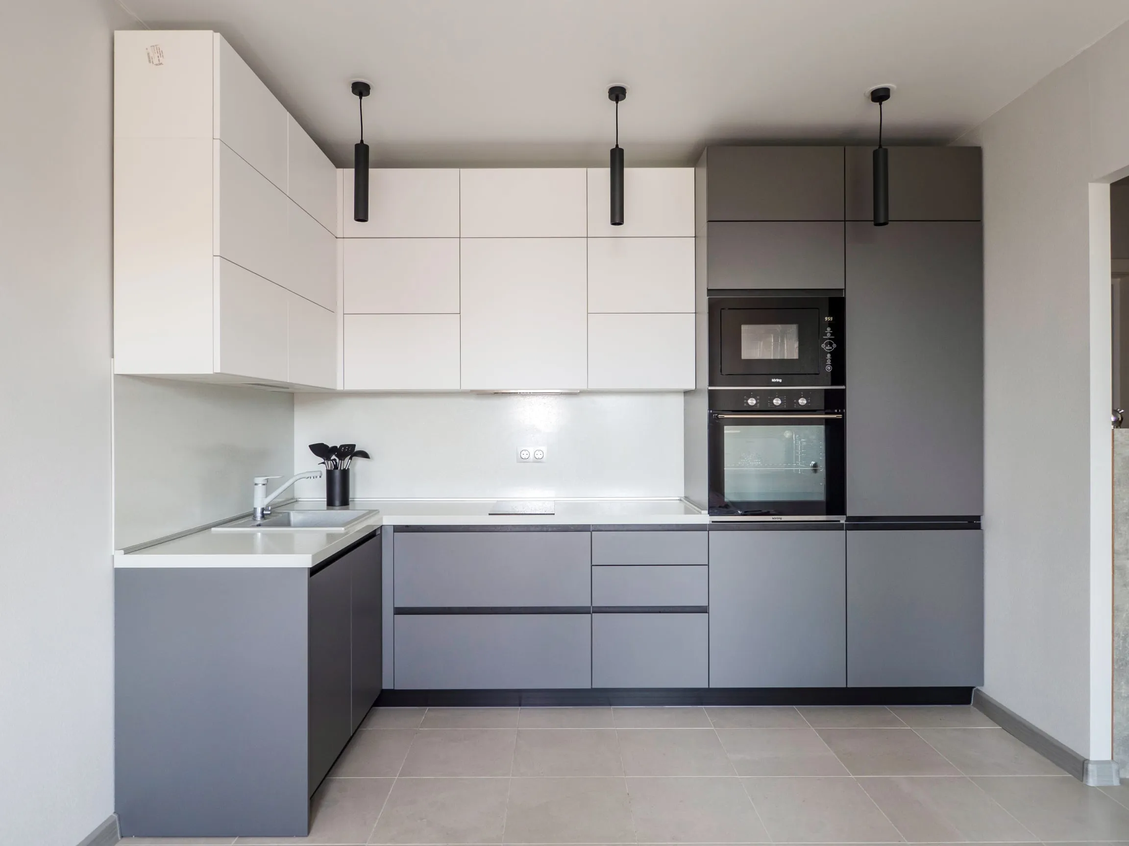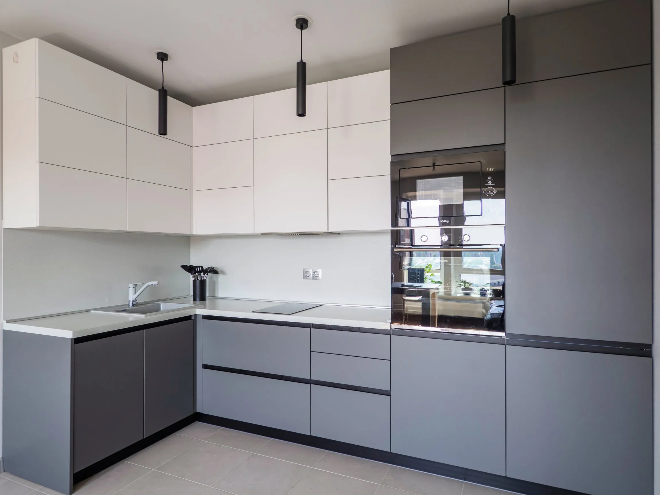 Фасады: МДФ Эмаль Система Оникс серый / МДФ Эмаль Система Белый супрамат