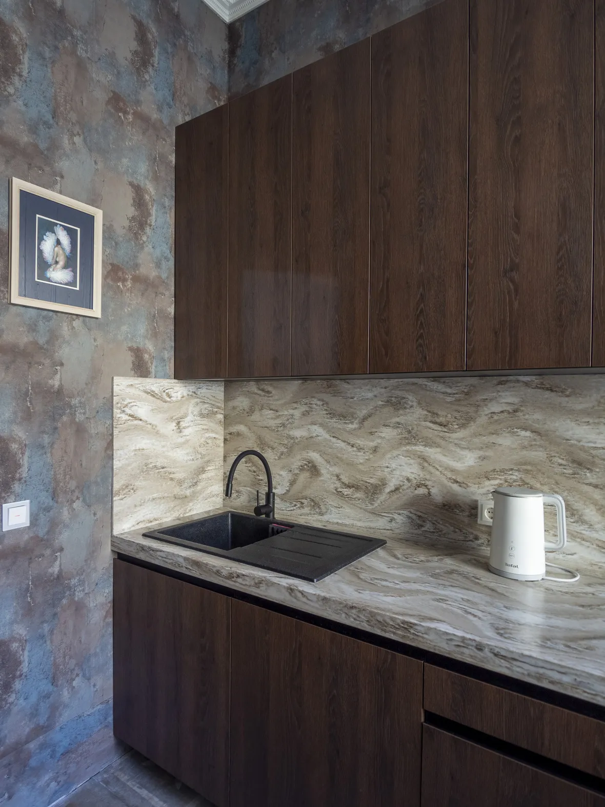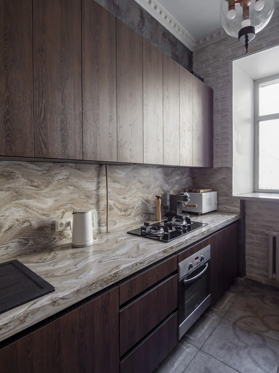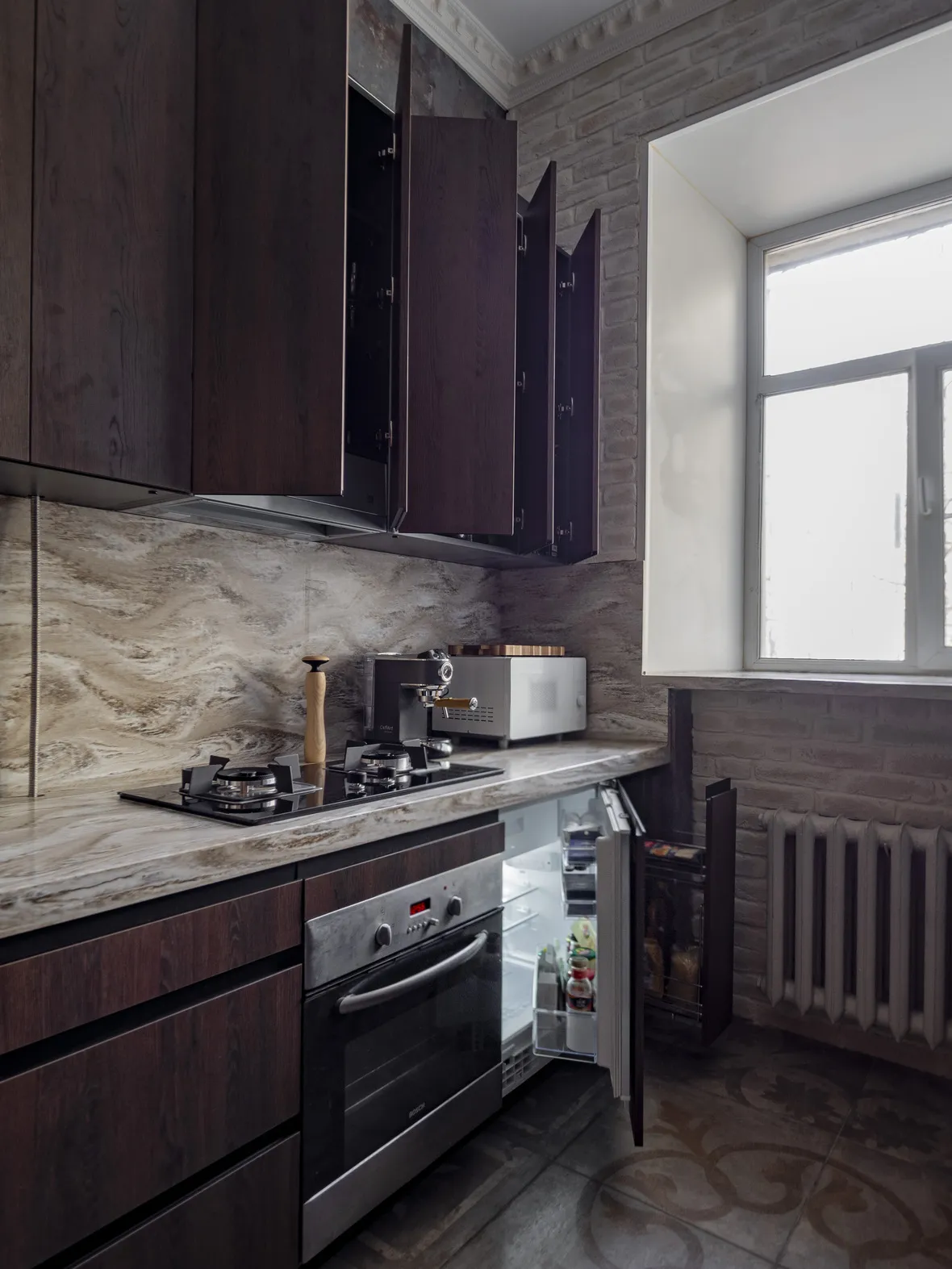 Фасад: Акрил-5 в цвете Сталь, Тимбер к цвете Кестен