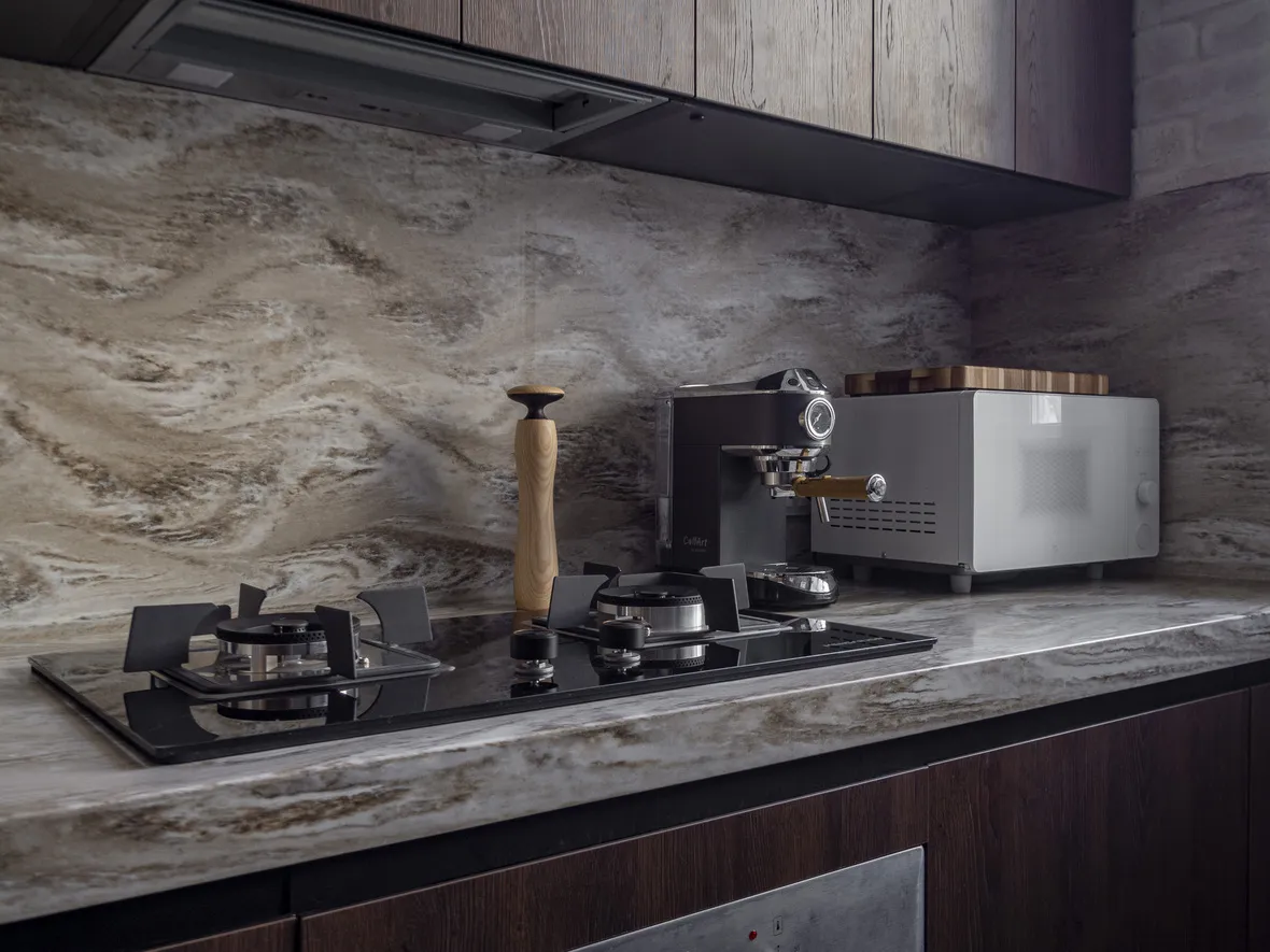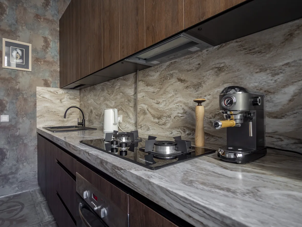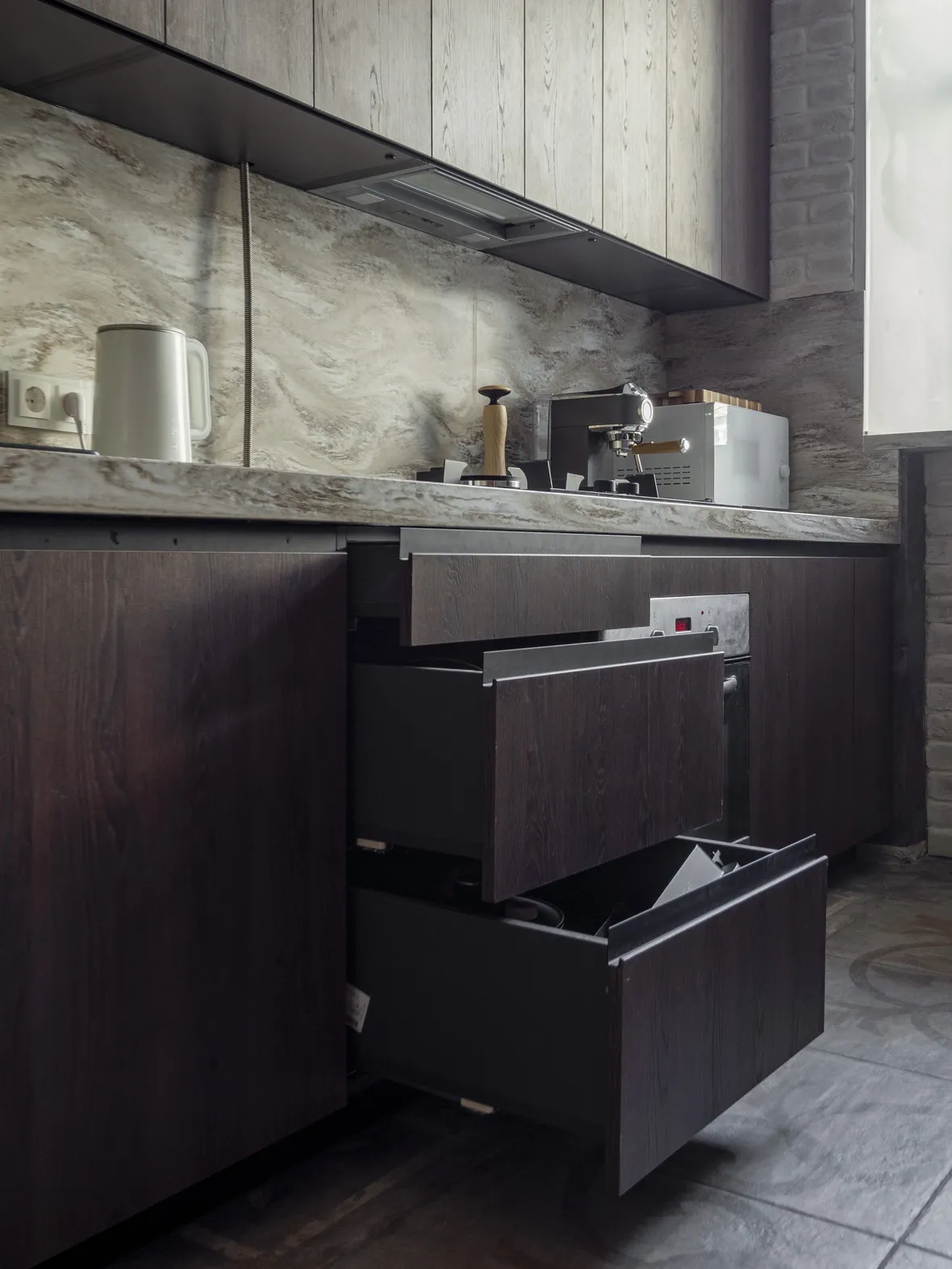 Фасад: Акрил-5 в цвете Сталь, Тимбер к цвете Кестен
